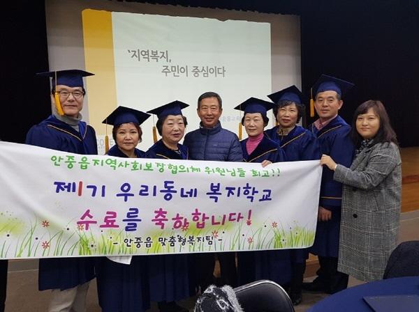 평택시 안중읍지역사회보장협의체가 지난 20일 관내 지역 주민들의 복지 역량을 강화하기 위해 진행된 ‘우리동네 복지학교’1기 교육을 수료했다.