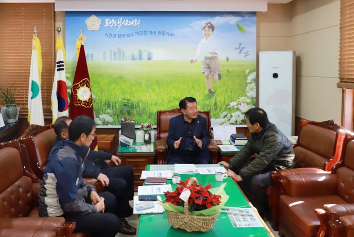 권영화 평택시의회 의장은 지난 20일 의장실에서 평택에코센터 주변영향지역 주민들의 복리증진을 위해 설립된 고덕면 주민지원협의체 대표자들과 간담회를 갖고 에코센터 내 설치되는 주민편익시설과 주변 지역 주민 고용증대 및 소득증대 사업 등과 관련해 논의했다.