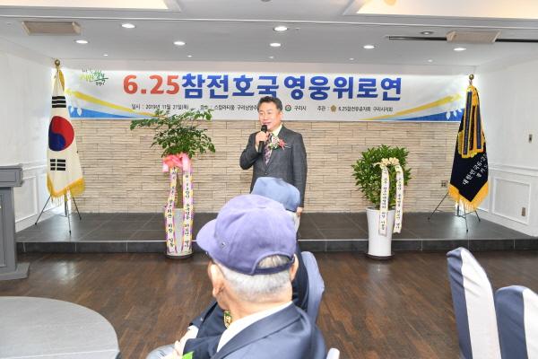 구리시는 지난 21일 인창동 소재 스칼라티움 웨딩홀에서 ‘2019년 6.25 전쟁 호국 영웅 위로연’을 개최해 호국 영울들에게 예우와 존경을 표하고 나라사랑에 대한 숭고한 희생을 기리는 시간을 가졌다.