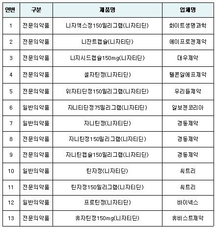 따라서 식약처는 잠정 관리기준을 초과한 니자티딘 완제의약품 13개 품목에 대해 잠정적으로 제조·판매 중지 및 회수 조치하고 처방을 제한하도록 조치했다.