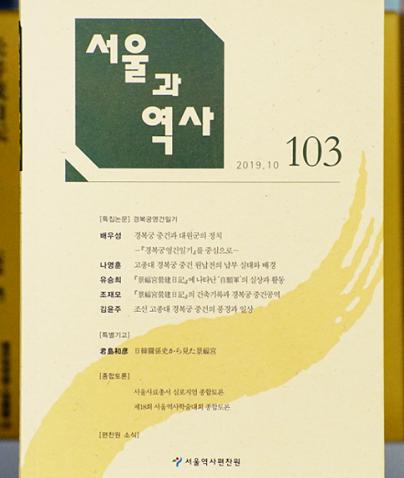 ‘서울과 역사’제103호의 게재논문은 ‘경복궁 중건과 대원군의 정치’, ‘고종대 경복궁 중건 원납전의 납부 실태와 배경’, ‘경복궁영건일기에 나타난 ‘자원군’의 실상과 활동’, ‘경복궁영건일기의 건축기록과 경복궁 중건공역’, ‘조선 고종대 경복궁 중건의 풍경과 일상’이다.