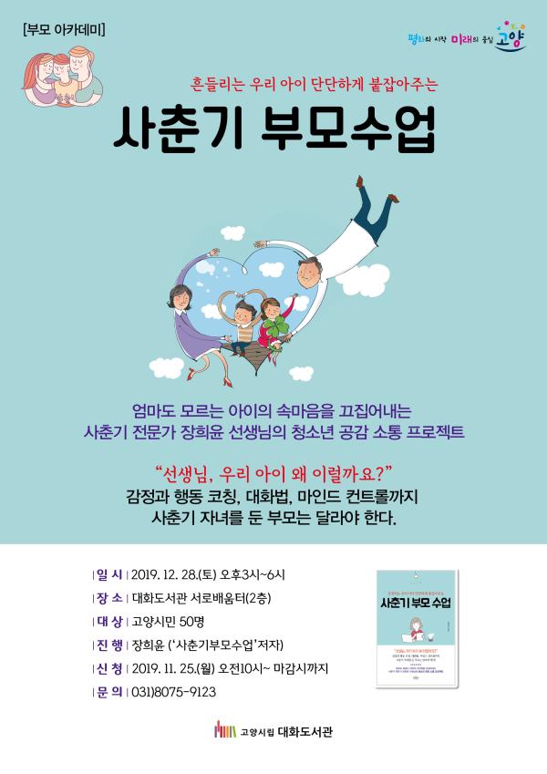 고양시 대화도서관은 부모와 자녀에 대한 올바른 이해와 소통을 위해 부모교육 분야 전문가를 초빙해 부모 아카데미를 실시한다.