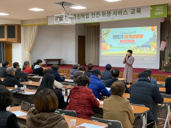 남양주보건소는 지난 21일 농업기술센터 3층 대강당에서 농촌민박사업자 100여명을 대상으로 진드기 매개감염병인 쯔쯔가무시증, 중증열성혈소판감소증후군 예방교육을 실시했다.