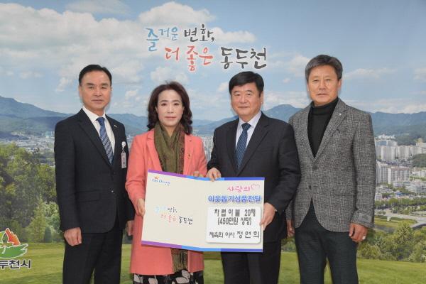 동두천시 체육회의 정연희 이사가 22일 독거노인 등 관내 난방 취약계층을 위해 사용해달라며 450만원 상당의 차렵이불 20채를 동두천시에 전달했다.