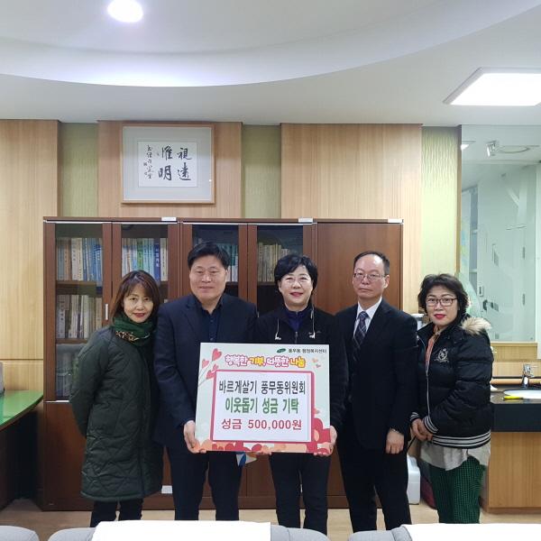 바르게살기운동 풍무동위원회는 지난 21일 풍무동행정복지센터에 관내 어려운 이웃을 위해 써달라며 성금 50만원을 기탁했다.