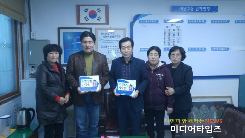[미디어타임즈=문상수 기자] 석남2동 주민센터(동장 윤병선)에서는 지난 15일 석남2동 통장자율회 (회장 김충식)와 함께 희망알림 사랑방 개설을 추진하였다. 희망알림 사랑방 개설사업은 지난 7월 하반기 석남2동 주요역점사업 실행 계획에 따라 실시되는 사업으로 석남2동 실정에 맞는 복지 문제를 스스로 해결하기 위한 맞춤형 복지 허브시책의 일환이며, 통별 1개 이상 생활밀착업소(이·미용실, 슈퍼마켓, 세탁소 등)에 “희망알림 사랑방” 표찰을 부착하여 관내 복지사각지대를 발굴하고 주민과 통장간의 소통을 강화하고자 마련된 것이다. ‘희망알림 사랑방’ 이용자들 중에서 취약계층 대상자가 발견되면 통장 혹은 업주가 동 주민센터에 의뢰하여 해당 복지서비스를 제공할 수 있도록 할 예정이다. 이번 사업은 석남2동에서 아이디어를 제공해 조마루 감자탕 석남점(대표 임형근) 후원으로 표찰을 제작했으며, 이후 석남2동 주민센터 자체회의를 통해 확정되었다. 윤병선 동장은 “이번 사업은 지역주민의 후원을 통해 이루어진 사업으로 앞으로 민생소통의 창구뿐만 아니라 주민들이 체감할 수 있는 복지행정 구현에 많은 역할을 할 것으로 기대한다.”고 말했다.