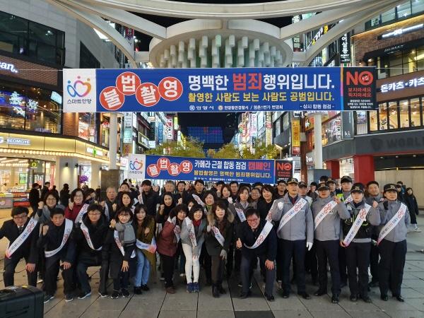 안양시가 이달 14일 경찰·상인회와 불법촬영근절 협약을 체결한데 따른 첫 행사다. 유흥업소가 밀집된 범계역 일대를 불법촬영범죄 청정지역으로 만들자는 취지로 열렸다.