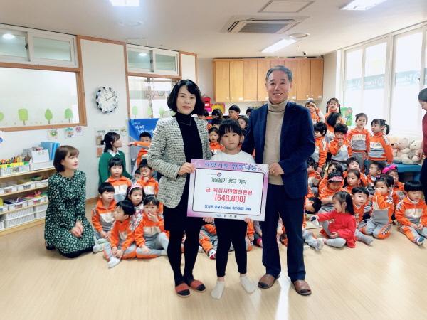 장기동 중흥i-class 어린이집 원아들은 지난 20일 장기동행정복지센터에 이웃돕기 성금 648,000원을 기탁했다.