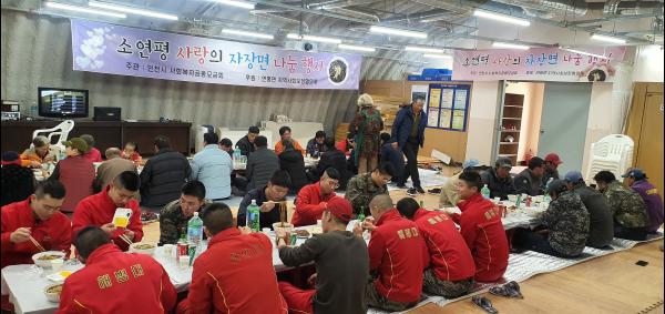 인천사회복지공동모금회가 주관하고 협의체가 후원한 이번 행사는 연평면의 새마을부녀회와 자원봉사자, 면사무소 직원의 도움으로 대연평도에서 준비한 짜장면, 보쌈 등 음식을 소연평으로 직접 배달해 소연평도 주민과 군 장병 등 100여명에게 대접했다.