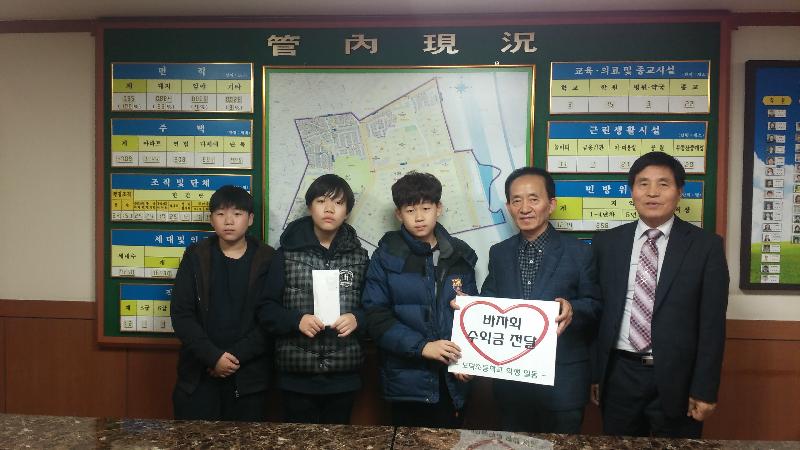 - 도덕초등학교 학생들이 운영한 바자회의 판매수익금 40만3천 원 전달
