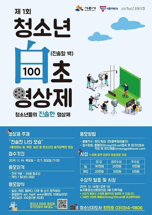 시흥시 능곡동 청소년문화의집에서 ‘제1회 청소년 100초 영상제’ 에 참가할 청소년들을 모집한다.