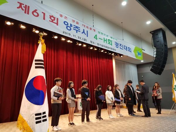 양주시는 지난 22일 학교4-H회, 청년4-H회원, 4-H후원회, 4-H지도자협의회, 지도교사 등 100여명이 참가한 가운데 ‘제61회 양주시 4-H경진대회’를 경기섬유종합지원센터 컨벤션홀에서 개최했다.