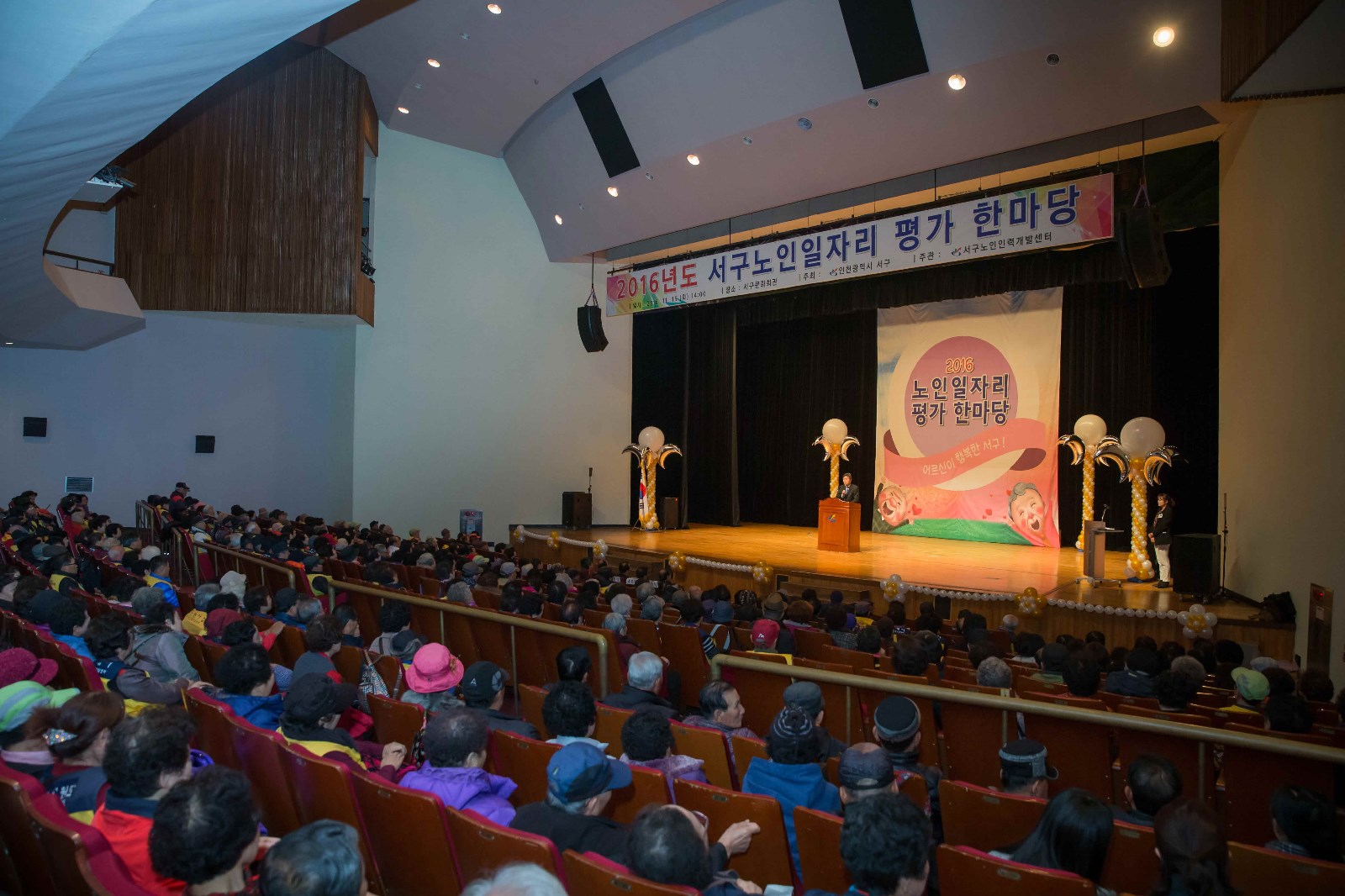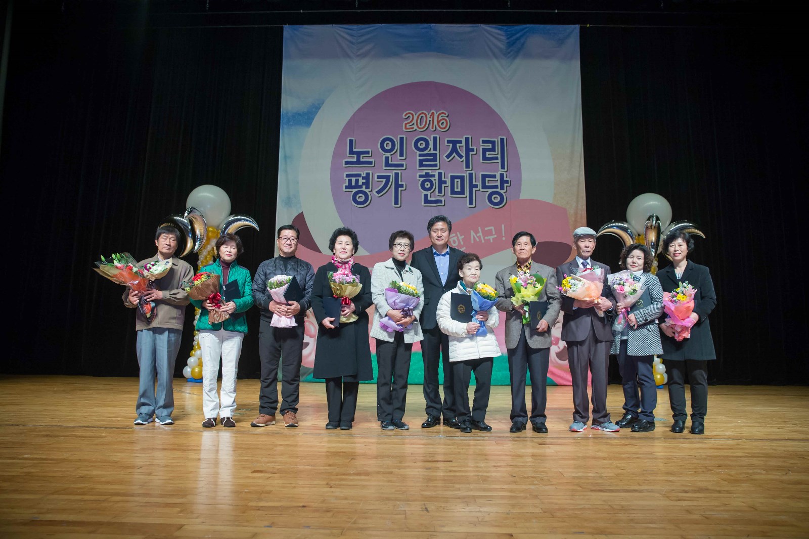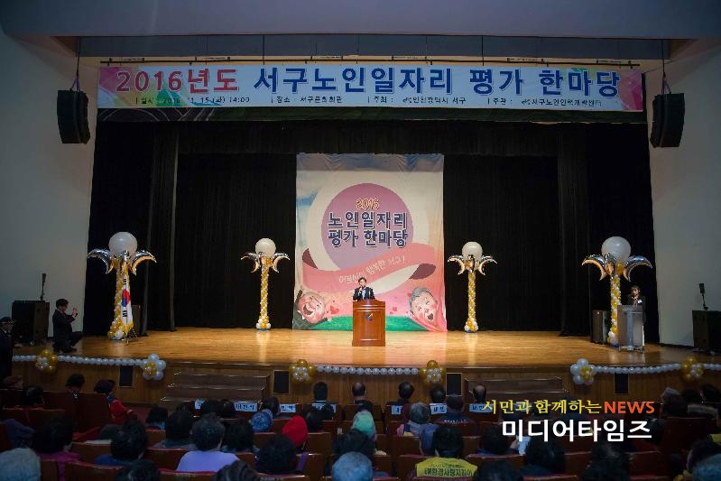 [미디어타임즈=문상수 기자] 인천광역시 서구(구청장 강범석)는 11월 15일(화) 서구문화회관 대공연장에서 『2016년 노인 일자리 평가 한마당』 축제를 개최하였다. 이번 행사는 2016년 한 해 동안 서구노인인력개발센터(센터장 박호도)를 통해 추진해온 20개 사업 1,700여명의 어르신들에 대한 노고에 감사드리기 위한 축제의 장으로 마련되었으며, 1,000여명의 어르신이 참석한 가운데 강범석 구청장과 양재편 대한노인회서구지회장, 이학재 국회의원 등 여러 내빈들이 참석한 가운데 노인일자리사업 유공자 10명을 표창하고, 노인일자리사업 참여 어르신들의 안전과 건강을 기원하는 자리로 이어졌다. 특히, 배우 전원주씨를 초청하여 행복한 노후생활에 대한 강연을 통해 어르신들과 같은 세대로써 즐거운 공감을 이끌어내는 유쾌한 시간이 되었다. 이외에도 다양한 문화공연과 함께 부대행사로 2016년 서구 전체 노인일자리 38개 사업단의 활동모습 사진전과 노인일자리 생산품 전시관이 함께 운영되어 더욱 풍성한 축제가 되었다. 강범석 구청장은 기념사를 통해 “어르신들의 활기차고 건강한 노후를 위해 다양한 사업을 확대해 나가기 위해 최선을 다 하겠다”고 밝혔다.