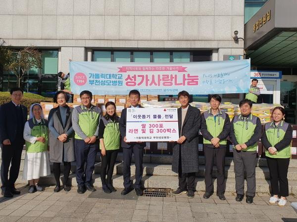 윤여소 복지위생국장은 “평소 지역사회 발전에 적극 협조해 주시는 가톨릭대학교 부천성모병원 관계자 여러분께 감사드리며 전해주신 물품은 도움이 필요한 분들께 잘 전달하겠다”고 말했다.