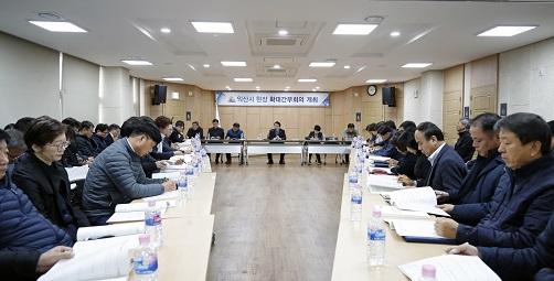 회의 주요 안건은 환경친화도시 추진단 구성 환경시범마을 조성 악취 및 미세먼지 저감대책 불법폐기물 근절대책 장점마을 후속대책 지속가능한 공원녹지체계 구축 등 33개 안건으로 추진사항에 대한 집중점검을 통해 익산시의 정책추진 의지를 확인했다.
