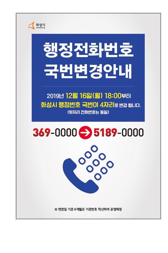 화성시가 다음달 16일 오후 6시부터 행정전화번호를 3자리 국번에서 4자리로 변경한다.
