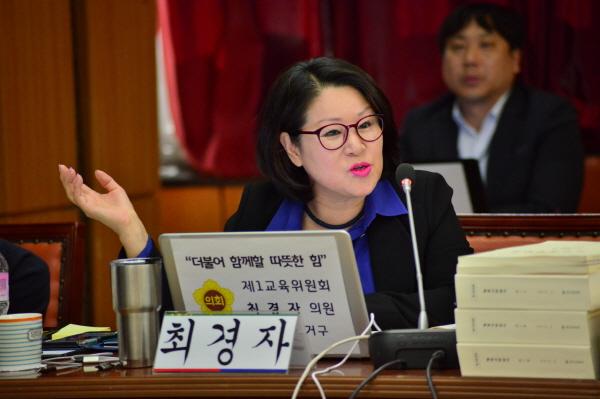 경기도의회 제1교육위원회 최경자 의원은 지난 22일 경기도교육청에 대한 2019년 총괄 행정사무감사에서 혁신학교, 혁신교육지구, 몽실학교 등 경기도교육청이 마을교육공동체를 구축하고자 추진하는 정책들은 지자체와의 협력 없이는 성공할 수 없는 만큼 지자체와의 유기적 관계 설정 강화를 주문했다. 또한 접경지대인 경기도의 특수성을 고려한 통일교육 강화와 평화통일특별도를 향한 분도 논의에도 교육청이 적극 대비해야 한다고 말했다.