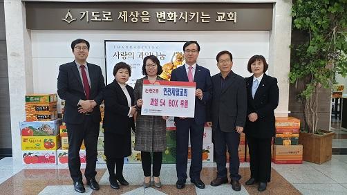 남동구 논현2동이 지난 20일 인천제일교회로부터 과일 54상자를 기탁 받았다.