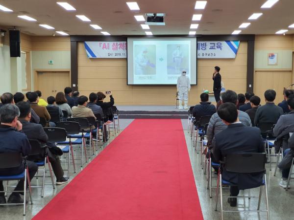 이번 교육은 관내 AI 발생을 대비해 살처분 예비인력의 인체감염을 사전에 예방하기 위해 마련됐으며 개인보호구 착·탈의 실습, 손씻기 등 인체감염 예방수칙에 대해 교육했다.