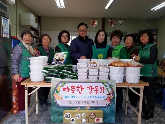 소요동 새마을부녀회원들은 이른 아침부터 모여 정성껏 닭볶음탕, 두부조림, 조미김 등의 밑반찬을 준비하고 홀몸어르신들의 가정에 직접 전달했다. 소요동 새마을부녀회의 밑반찬 나눔 봉사활동은 저소득층 홀몸어르신들의 안부를 확인하고 필요한 서비스를 연계하는 등 소요동 이웃공동체의 중추적 역할을 담당하고 있다.