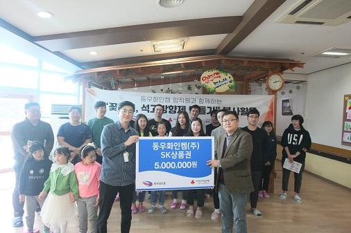 동우화인켐이 지난 23일 평택시 노인전문요양원을 방문, 500만원 상당의 상품권을 전달했다.