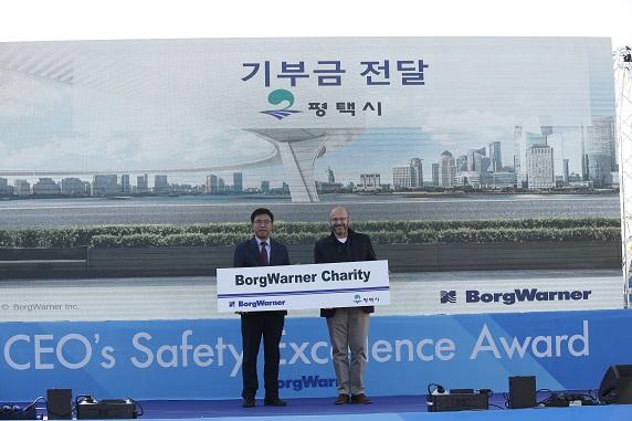 이날 기탁된 기금은 서한워너터보시스템즈의 340명의 임직원들이 2018년 4월부터 2019년 6월까지 100만 시간 동안 기록적인 재해없이 안전수칙을 준수해 달성한 성과로 본사 BorgWarner에서 사회공헌 기금으로 수여 받은 것이다.