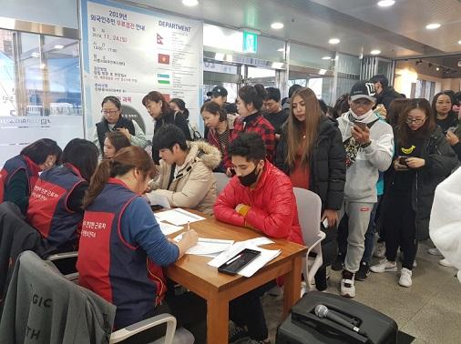 시흥시와 시흥시외국인복지센터, 시흥희망의료봉사단은 지난 24일 시흥시외국인복지센터에서 한국국제보건의료재단, 센트럴병원과 함께 외국인주민 170명을 대상으로 무료건강검진을 실시했다.