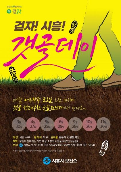 ‘걷자 시흥 갯골데이’는 지역 주민의 걷기 실천을 활성화하기 위해 매월 마지막 주 토요일을 ‘시흥이 걷는 날’로 지정해 3월부터 진행해 왔다. 이번 11월은 2019년 걷기행사 대장정의 마지막으로 한 해 행사를 마무리하는‘아듀~갯골데이’테마로 진행한다.