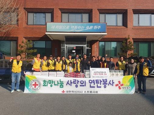 소초적십자봉사회는 지난 24일 소초면 행정복지센터에서 동절기 사랑의 후원품 전달식을 갖고 연탄 2,000장, 쌀 20포, 화장지 20개 등을 소초면 저소득가구 30세대에 직접 전달했다.