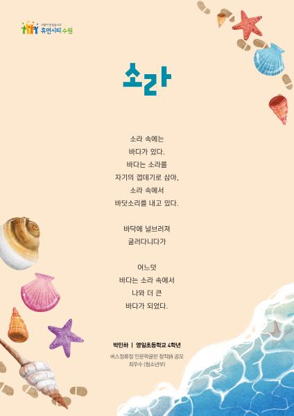 수원시는 지난 9월 ‘행복한 나눔의 도시, 따뜻한 소통’을 주제로 버스정류장 인문학글판에 게시할 창작시를 공모했다. 응모작품 수는 청소년부 202편, 일반부 57편이었다. 심사를 거쳐 청소년부 20편, 일반부 10편을 수상작으로 선정했다. 청소년부는 최우수 1편 우수 7편, 장려 12편, 일반부는 최우수 1편, 우수 3편, 장려 6편이다.