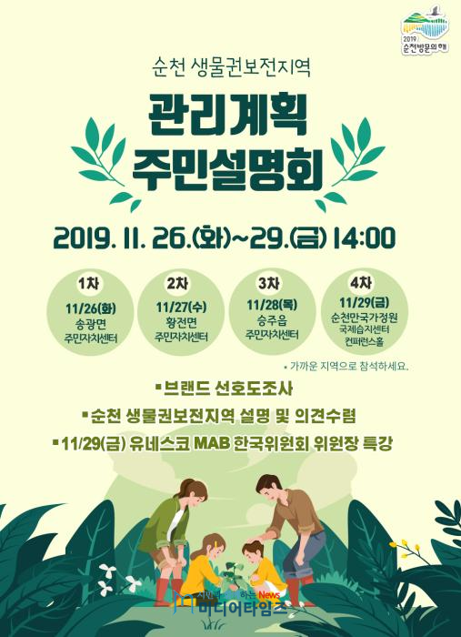 특히, 11월 29일에 순천만국가정원 국제습지센터 컨퍼런스홀에서 개최되는 설명회에서는 유네스코 MAB 한국위원회 위원장인 조도순 교수를 초청해 국·내외적으로 성공적한 사례와 민·관·학 등 계층별 역할에 대한 특강을 진행할 계획이다.