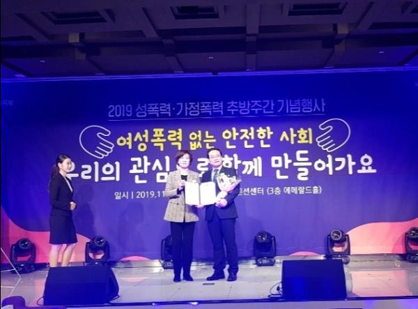 부천시가 지난 25일 열린 성폭력·가정폭력 추방주간 기념행사에서 2019년도 폭력예방교육 최우수 기관으로 선정되어 여성가족부 장관 기관 표창을 받았다.