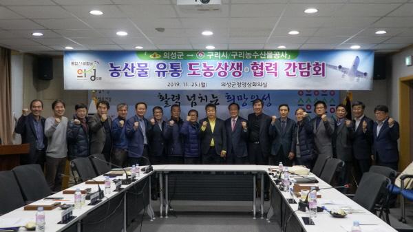 먼저 안승남 시장은 오전 11시 김주수 의성 군수를 예방한데 이어 의성군청 영상회의실에서 자두, 한지형 마늘, 사과, 고추와 복숭아 재배의 주역인 김주수 의성 군수 주재로 의성군 농협조합장, 농가조직대표 등 11인을 참석한 가운데 의성군·구리시·구리농수산물공사 농산물 유통 도농상생·협력을 위한 간담회를 개최했다.