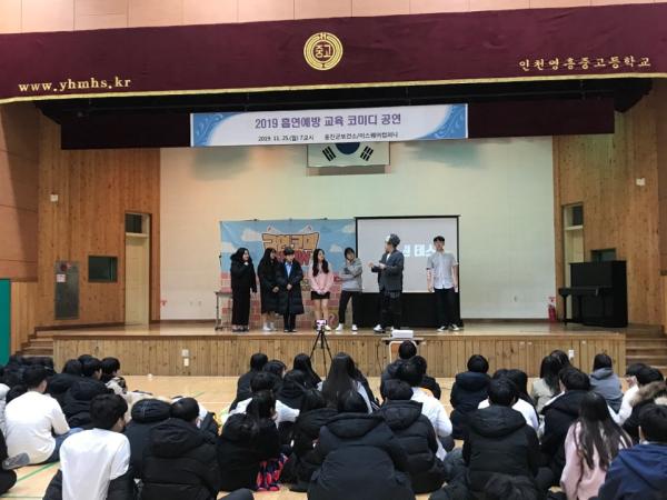 인천시 옹진군 보건소가 지난 25일 영흥도에서 영흥초중고등학교의 학생 400여명을 대상으로 청소년 흡연폐해 예방 공연을 실시했다.