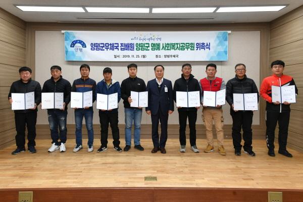 양평군은 지난 25일 양평우체국에서 집배원 59명을 양평군 명예 사회복지공무원으로 위촉했다.