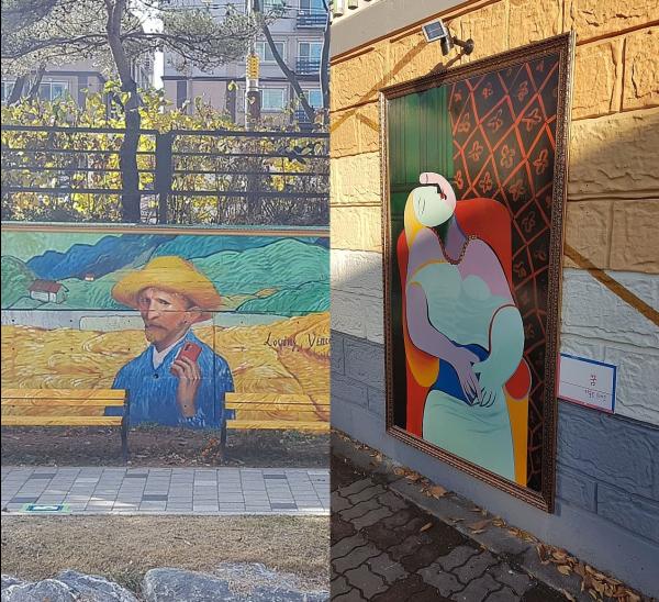 이번에 추진한 ‘나진포천 산책로 벽화사업’ 및 ‘당하 풍림아이원 3차 아파트 담장 벽화보수사업’은 주민들 통행이 많은 곳으로 ‘나진포천 산책로’는 인상파 거장인 빈센트 반 고흐작품을 게시해 나진포천을 야외 갤러리로 만들어 항상 주민들이 고흐의 명작을 감상할 수 있도록 했으며 포토존을 설치해 주민들에 고흐작품을 좀 더 친숙하게 다가갈 수 있게 했다.
