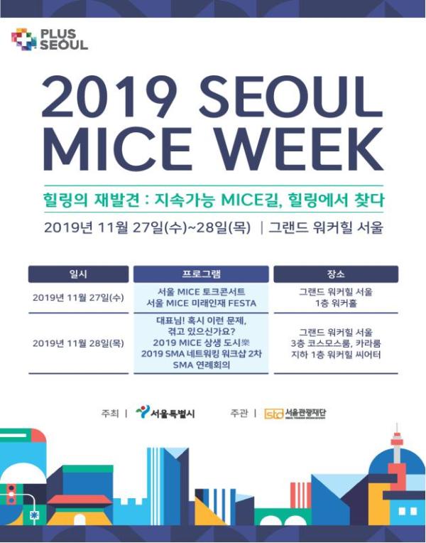 4년 연속, 세계 3위의 국제회의 개최도시로 선정되며 성장을 거듭하고 있는 ‘서울 MICE 산업’. 이러한 MICE 업계의 한 해를 돌아보는 축제의 장인 ‘2019 서울 마이스 위크’가 열린다. 행사는 오는 27일부터 28일까지 이틀간, 서울 그랜드 워커힐 호텔에서 개최된다.