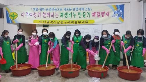 인천남동구새마을부녀회는 지난 23일 새마을회관 지하에서 생명살림 운동으로 이주여성과 부녀회장 등 20명이 참여한 가운데 폐식용유를 활용한 재생비누 만들기 체험행사를 가졌다.
