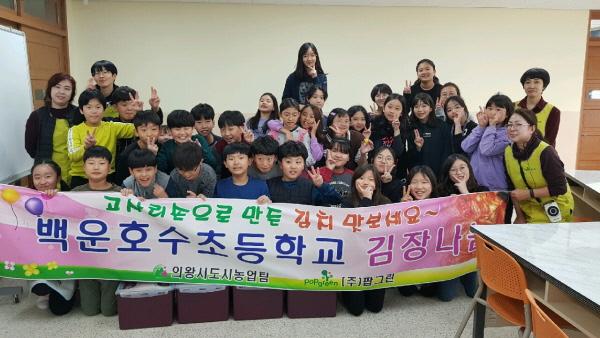 백운호수초등학교 도은희 선생은“다른지역에 근무할 땐 없던 스쿨팜 프로그램을 올해 의왕지역으로 와서 처음 아이들과 함께하게 되었는데, 아이들이 열심히 참여하며 기뻐하는 모습을 보면서 뿌듯함을 느꼈고 직접 담근 김치로 나눔까지 할 수 있어 무척 보람된 시간이었다”고 말했다.