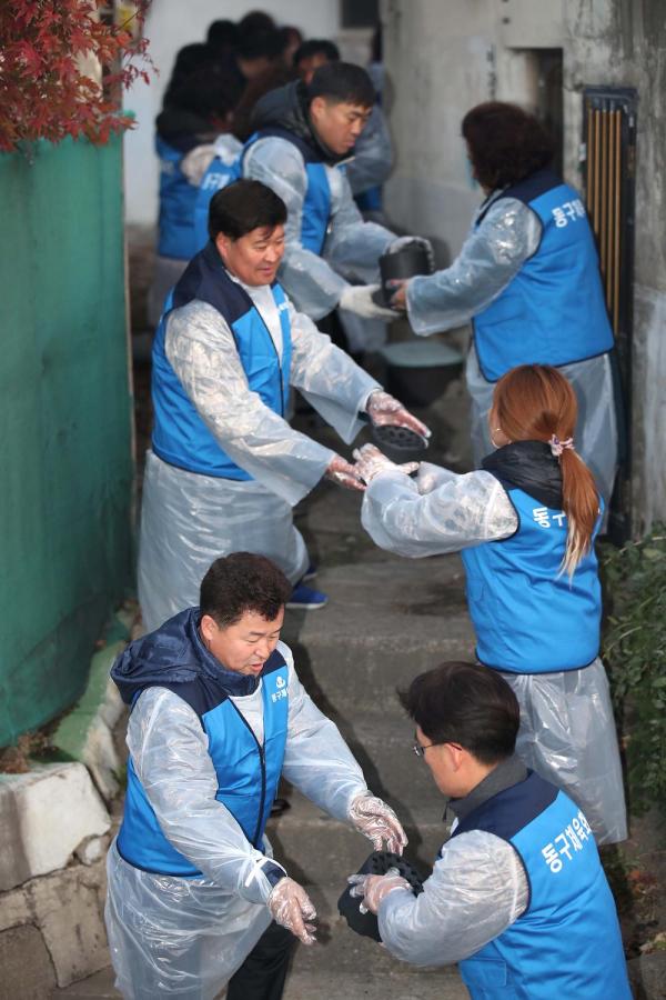이번 행사는 동구체육회 임원 및 이사 등 30여명이 참여해 관내 저소득층 2가구에 100장씩 연탄을 직접 배달하는 등 총 2,500장의 연탄을 25가구에 전달했다.