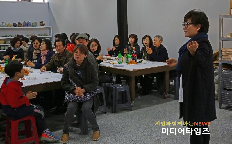 | 19일 장은진 회장이 ours 공방에서 열린 도자기 체험 행사에서 인사말을 하고 있다. <사진/ⓒ미디어타임즈> |