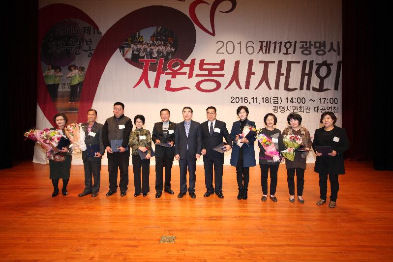 올해 제11회를 맞이하는 광명시자원봉사자대회는 자원봉사활동기본법 제13조에 의거하여 UN이 정한 세계자원봉사자의 날(12월 5일)을 기념하고 자원봉사자에게 감사와 경의를 표하기 위하여 기념식, 문화공연, 유공자표창, 인증서 및 배지 수여 등을 진행하였다.