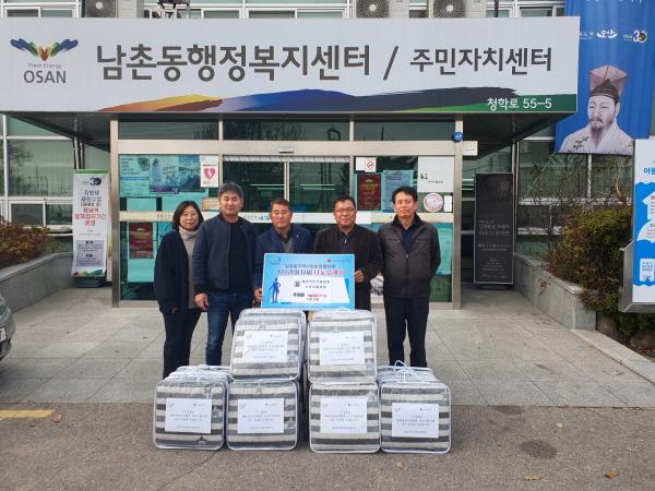 오산시 남촌동행정복지센터는 지난 25일 ‘키다리아저씨 나눔릴레이사업’으로 대한전문건설협회 경기도회 오산시협의회에서 100만원 상당 겨울 난방용품을 이웃돕기 물품을 기탁했다고 밝혔다.