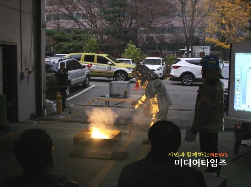 | 인천서부소방서, 금속분화재 재연실험 및 안전사고 예방교육 실시하는 모습 <사진/ⓒ미디어타임즈> |