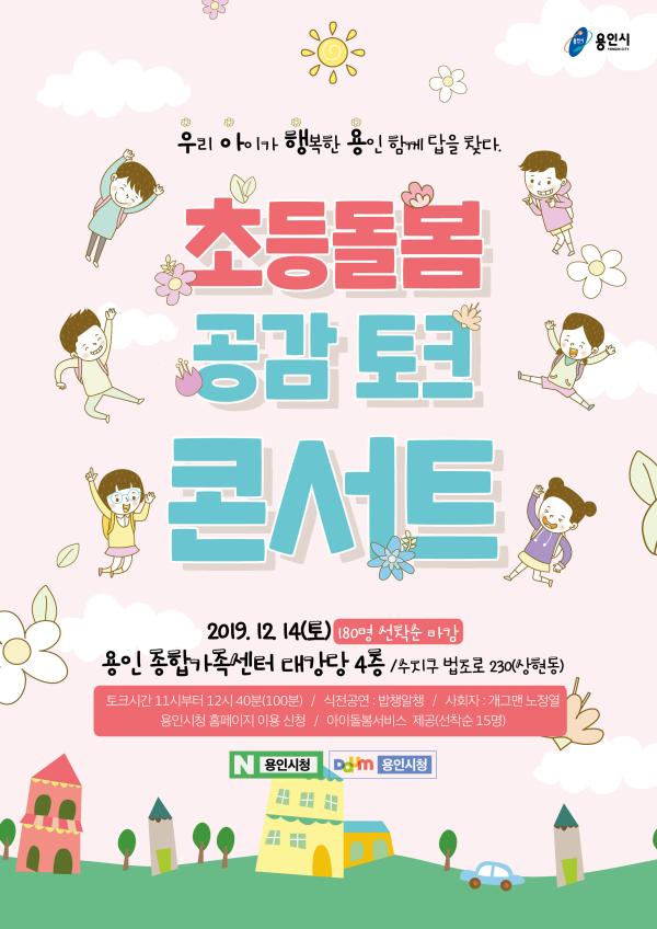 용인시는 다음달 14일 수지구 상현동 용인종합가족센터에서 진행하는 초등돌봄 공감 토크콘서트에 참가할 용인시민 180명을 26일부터 선착순 모집한다.