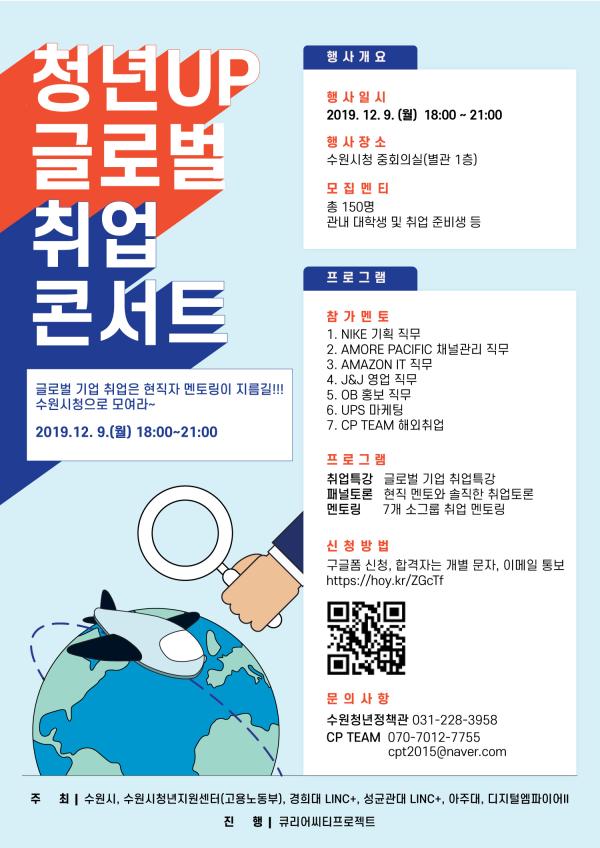 수원시, 12월 9일 시청에서 열리는 '청년UP 글로벌 취업 콘서트' 참가자 모집