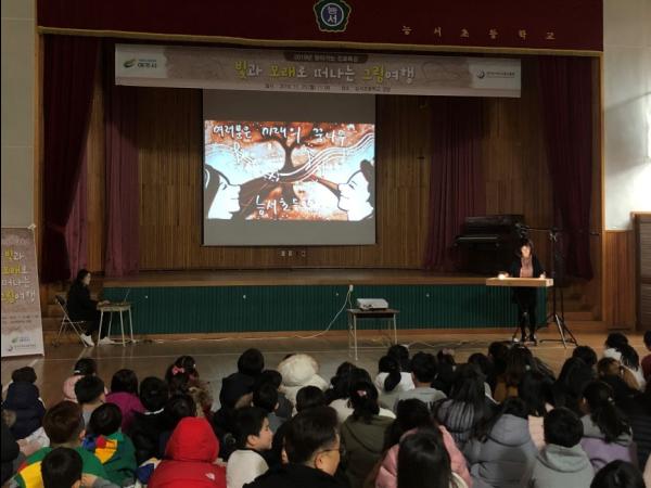 여주시 청소년진로진학상담센터와 여주교육지원청이 공동으로 주관해 추진중인 2019년 찾아가는 진로특강에서 두 번째 순서인 ‘샌드 애니메이션’이 지난 25일부터 27일까지 여주 관내 초교에서 진행됐다.