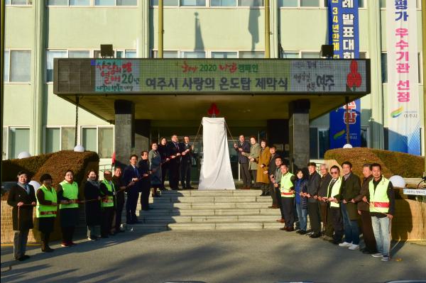 여주시와 경기사회복지공동모금회가 지난 26일 여주시청 중앙 광장에서 “희망2020 나눔캠페인”의 일환으로 사랑의 온도탑을 설치하고 성금 전달식을 진행했다.