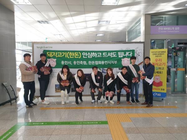 용인시는 지난 26일 경전철 기흥역에서 용인축협, 한돈협회 용인시지부와 함께 시민들에게 국산 돼지고기 한돈의 소비를 촉진하는 캠페인을 벌였다.