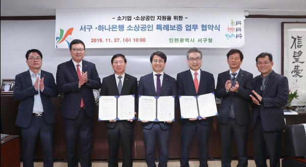 협약식은 이재현 서구청장을 비롯해 김인석 KEB하나은행 부행장, 남수준 경인영업본부 대표, 조현석 인천신용보증재단 이사장이 참석한 가운데 진행됐다.